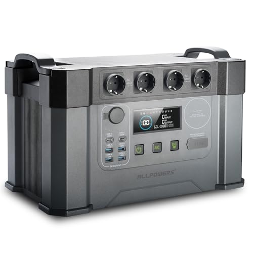 ALLPOWERS S2000Pro Station électrique portable 1451Wh, 4 prises CA 2400W (crête 4000 W), 0 à 100% en 1,5 heure, fonction UPS, générateur solaire pour camping, panne de courant, extérieur, camping-car