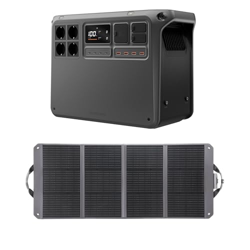 FOSSiBOT Generateur Electrique Portable 2400W/2048Wh avec Panneau Solaire 200W, Générateur Électrique, LiFePO4 Batterie, 3x230V Pure Sine Wave CA Outlet pour UPS, pour Camping-cars, Jardin, RV