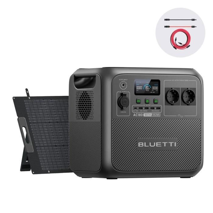 BLUETTI AC180 Générateur Électrique Solaire avec 200W Panneau Solaire(Livré Séparément), 1152Wh Batterie LiFePO4 avec 2 Sorties CA 1800W (2700W Pic) pour Camping, Voyage, Panne de Courant
