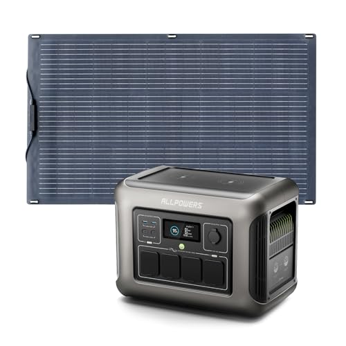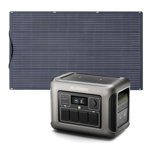 ALLPOWERS R1500 Station électrique portable 1152Wh avec panneau solaire flexible 100W IP68 étanche, batterie LiFeP04, 2 x Chargement rapide sans fil 15W, générateur solaire pour camping-car, jardin