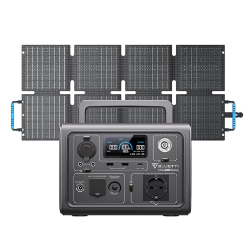 BLUETTI EB3A Générateur Solaire avec 60W Panneau Solaire, Station Électrique Portable 268Wh avec Sortie CA 600W (1200W Pic), Batterie LiFePO4 pour Camping-car, Voyages, Pannes de courant