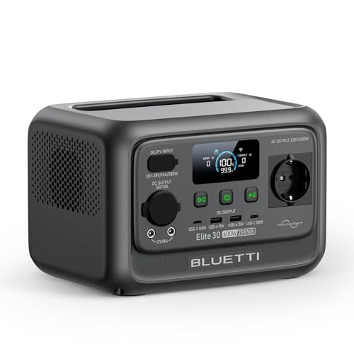 BLUETTI Elite 30 V2 Générateur Électrique Portable, Recharge de 0-100% en 70 Min, 288Wh 600W (Puissance de Surcharge 1500W), Batterie LiFePO4, Solaire/CAC/Voiture, Pour Panne Courant, Camping, Tempête