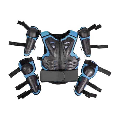 Fxzqgnh 5 Pièces Protection Motocross Enfant Ensemble Armure Vélo Garde Dos Poitrine Genouillère Coudière Mousse Élastique Respirante pour Cyclisme Patin, Bleu