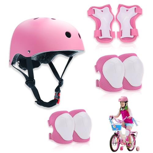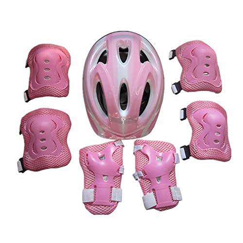 ValueTalks Sets de Protection Enfant Casque Vélo Réglable Coudières Genouillère Protège-Poignets Protections Rollers Velo Skateboard Rollers Skate/Rose
