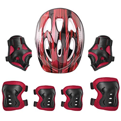 iixpin Lot de 7 Pièces Equipement de Protection Casque Vélo Enfant Protège-poignet Genouillère Coudière Rouge #1