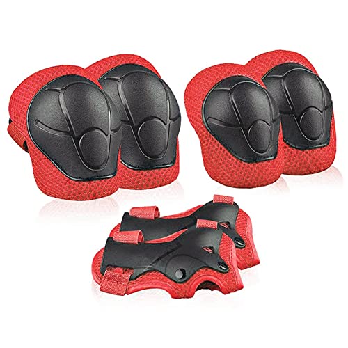 Genouillère sport Ensemble d'engrenages de protection de 6 pièces, patins à genoux, patins de coude, protège-poignets, kit de protection de la sécurité du patinage de vélo Genouillère ( Color : Red ,