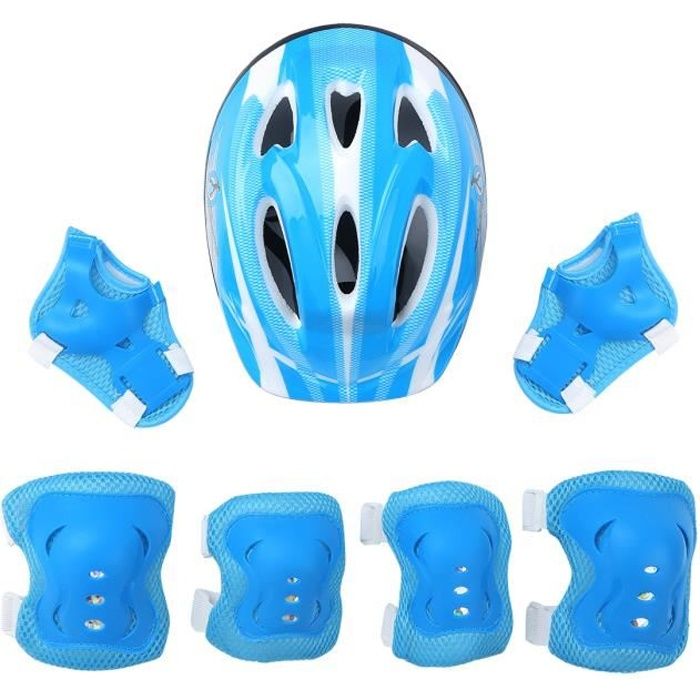 ValueTalks Sets de Protection Enfant Casque Vélo Réglable Coudières Genouillère Protège-Poignets Protections Rollers Velo Skateboard Rollers Skate (Bleu)
