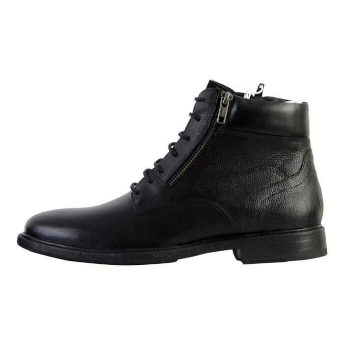 Bottine Homme Geox Terence - Cuir Noir - Fermeture à lacets/zip - Talon plat
