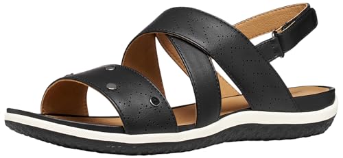 Geox Femme Vega B Sandales Plates, Noir, 37 EU