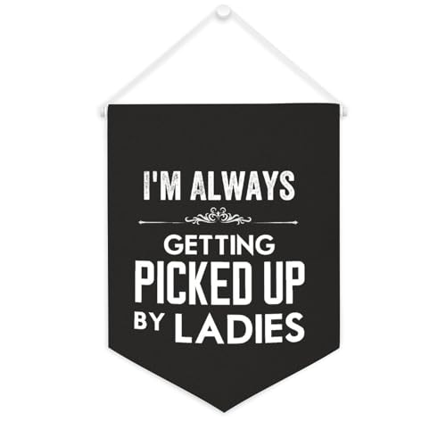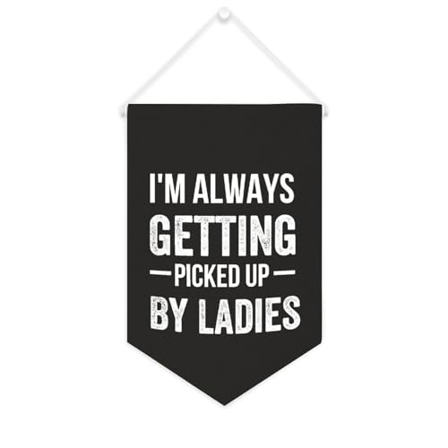 Yelolyio Bannière en toile avec inscription « I'm Always Getting Picked Up By Ladies » à suspendre au mur - Œuvre d'art décorative pour salon, chambre à coucher, bureau, cadeaux de vacances - 25,4 x