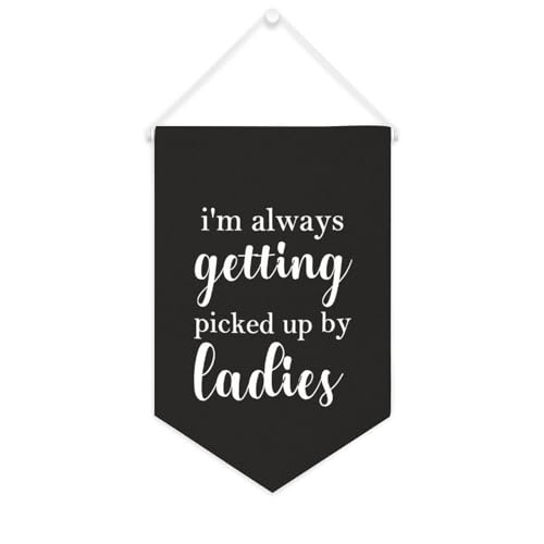 Yelolyio Bannière décorative en toile avec inscription « I'm Always Getting Picked Up By Ladies » - 25,4 x 38,1 cm - Décoration murale pour chambre à coucher, chambre d'enfant, décoration d'intérieur