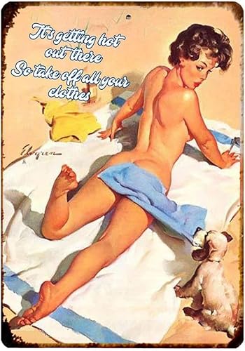 Horienteeon Plaque en métal vintage Pin Up Girl Getting Hot Take Clothes Off Man Cave pour maison, bar, pub, cuisine, garage, restaurant, plaque murale décorative - 20 x 30 cm