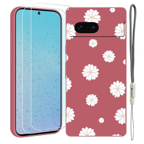 YonderYM Compatible avec Google Pixel 7,Coque avec 2 Pieces Verres Trempés avec Marguerites Motif Housse de téléphone Protection Souple en Silicone Mince Bumper