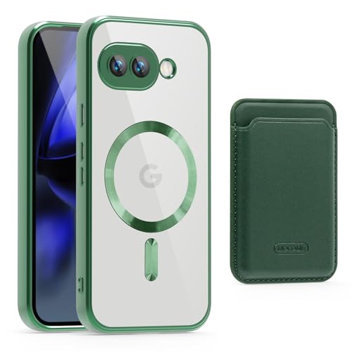 LEMAXELERS Magnétique Coque pour Google Pixel 7A avec Porte-Cartes,[Compatible avec MagSafe] Étui Portefeuille Transparente Housse Antichoc Bumper TPU Coque pour Google Pixel 7A Vert CD