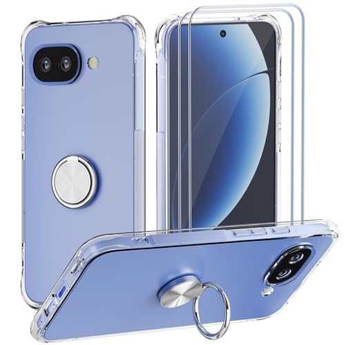 Coque Compatible avec Google Pixel 10a, Anneau Béquille Crystal Clear Silicone Etui Anti-Chute Quatre Coins Transparent Protection Housse TPU Rotatif 360 Bague Cover, Argent