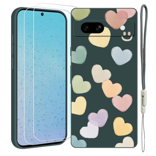 YonderYM Compatible avec Google Pixel 7A,Coque avec 2 Pieces Verres Trempés avec 16 cœurs Motif Housse de téléphone Protection Souple en Silicone Mince Bumper