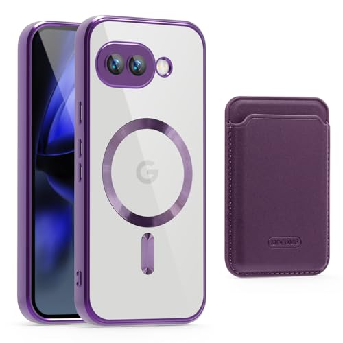 LEMAXELERS Magnétique Coque pour Google Pixel 7A avec Porte-Cartes,[Compatible avec MagSafe] Étui Portefeuille Transparente Housse Antichoc Bumper Coque pour Google Pixel 7A Violet CD