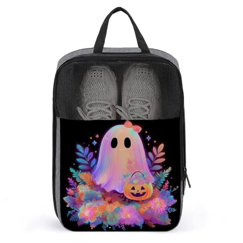 Sweet Ghost Sac à chaussures de golf avec motif floral et citrouille pour voyage, usage quotidien, sac de rangement anti-poussière