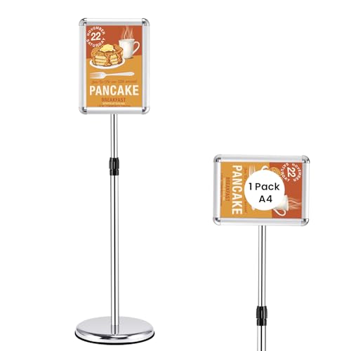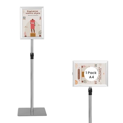 GIANTEX Porte-affiche sur Pied A4, Présentoirs avec Rotation à 360°, Hauteur Réglable 74-118 cm, Base Lestée, Panneau d’Affichage pour Menu, Mariage, Restaurant (Argent, 1)