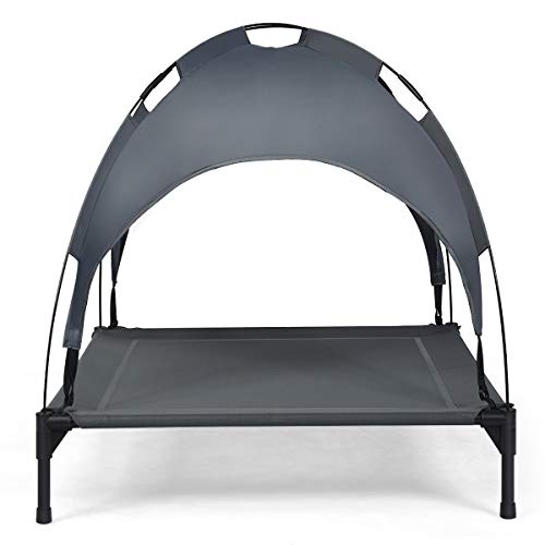 GIANTEX Lit pour Chien, avec Auvent Amovible et Imperméable, Transat Chien Portable et Lavable Intérieur et Extérieur, Capacité de 50 kg, 89,5 x 80 x 84 cm, Gris