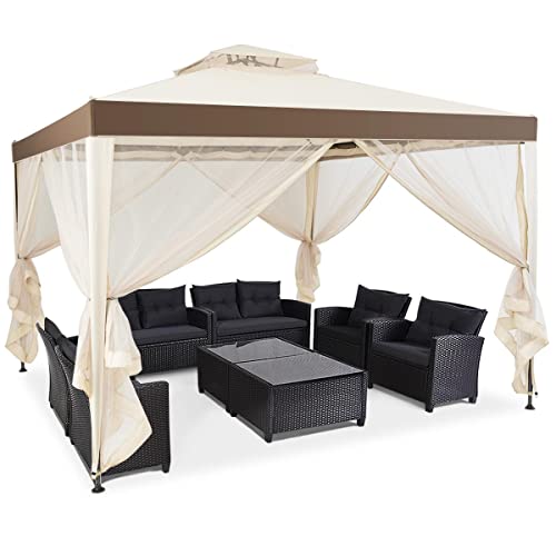 GIANTEX 3 x 3 m Tonnelle de Jardin Imperméable,Barnum Pliant avec Structure en Acier & 4 Rideaux Latéraux, Ventilation & Anti-moustiques, Tente de Reception pour Terrasses, Pelouses, Balcons (Beige)