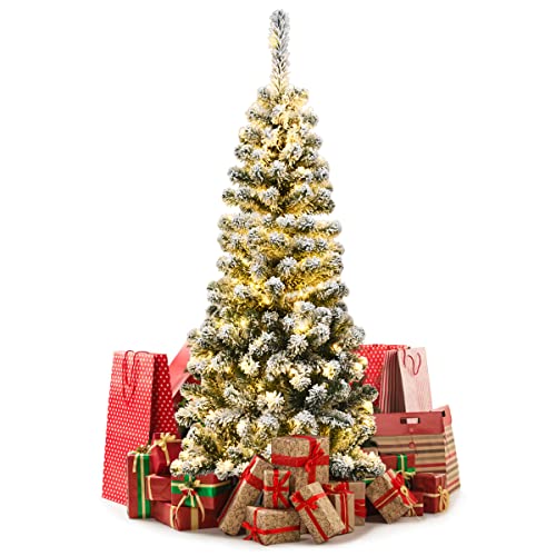 GIANTEX Sapin de Noël 140/180/230 CM, Arbre de Noël avec LED Chaud, Sapin Artificiel Blanc avec Neige, Arbre Artificiel Décoratif de Noël, Support en Métal, pour Chambre, Salon (180 CM 230 LEDs)