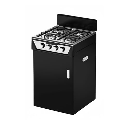 Wintem – Cuisine à gaz 4 feux avec compartiment porte-bouteille intégré, cuisine à installation libre pour intérieur et extérieur, structure robuste compacte et facile à utiliser, noire