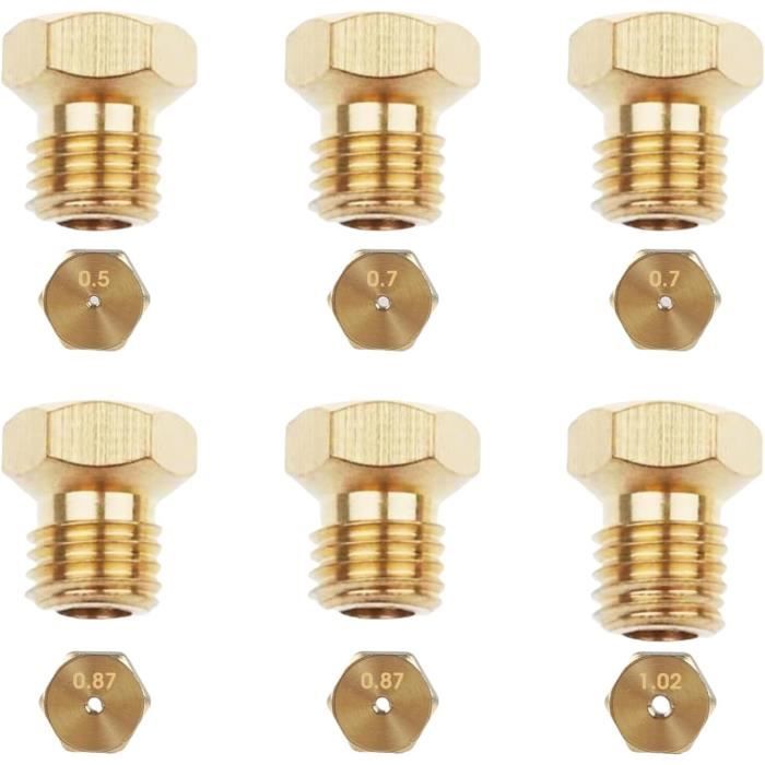 6Pcs Gicleur gaz Butane Universels [1x05 2x07 2x087 1x102]Jeu de Conversion pour GPL Injecteur de Gaz Gicleur Bouteille