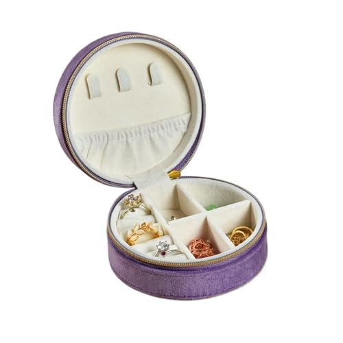 Round Mini Ring Box Travel Portable Small Jewelry Gift Packaging And Storage Organizer Pour Bagues, Colliers, Et Bracelets(Purple)