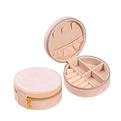 Round Mini Ring Box Travel Portable Small Jewelry Gift Packaging And Storage Organizer Pour Bagues, Colliers, Et Bracelets(Pink)
