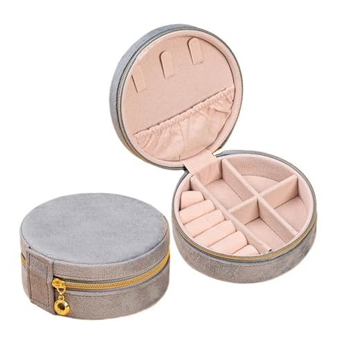 Round Mini Ring Box Travel Portable Small Jewelry Gift Packaging And Storage Organizer Pour Bagues, Colliers, Et Bracelets(Grey)