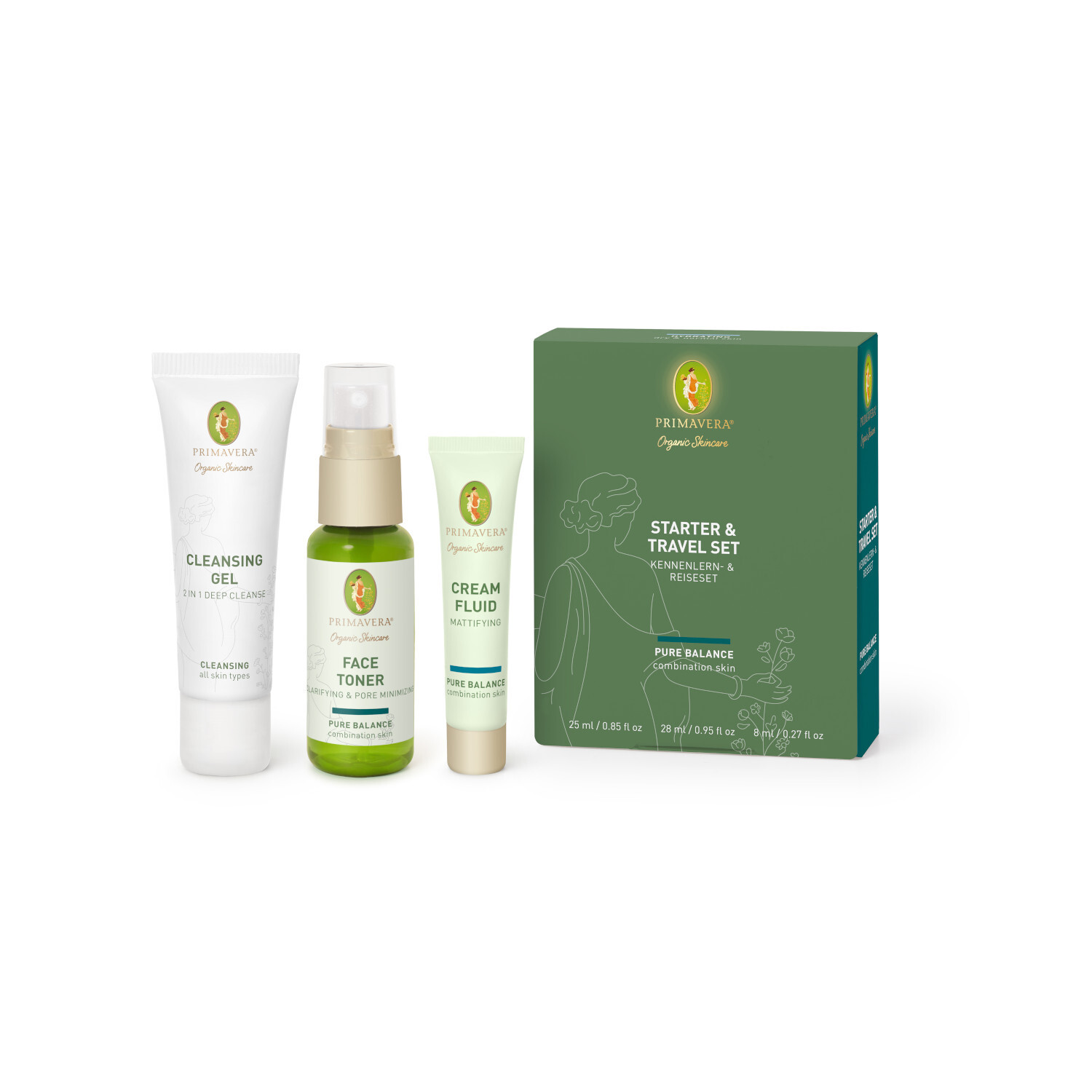 PRIMAVERA Pure Balance Starter and Travel Set for Combination and Oily Skin - Cleansing, Toning, and Moisturizing - Vegan Gift Box