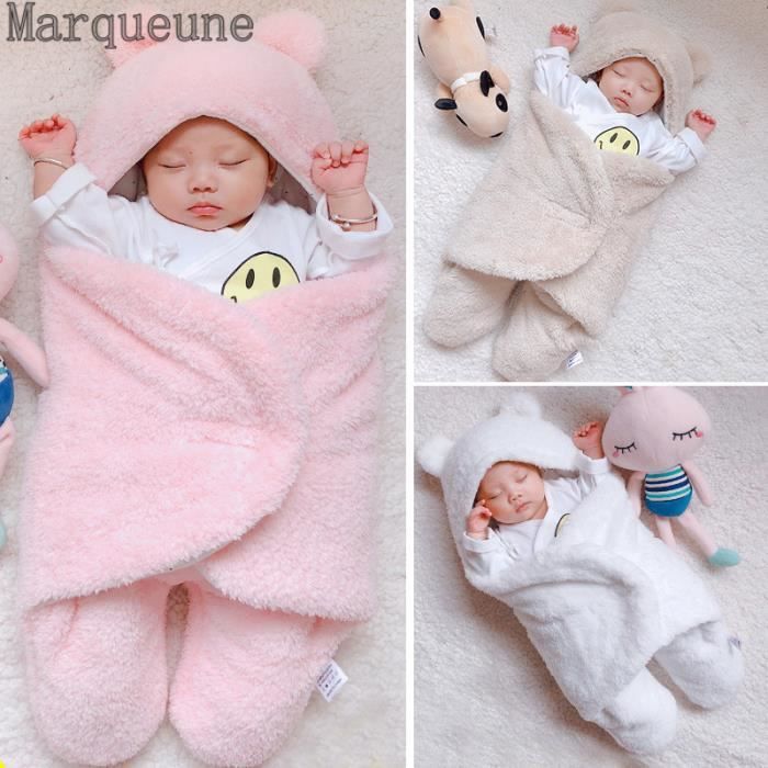 Couverture en Polaire Chaud Hiver Automne Bébé Gigoteuse Demmaillotage Nouveau Né 0-6 mois Nid dange-75CM-Blanc