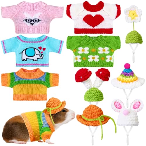 Clysee Ensemble de vêtements 10 pièces pour Cochon d'Inde, 5 Costumes de Cochon d'Inde, 5 Mini Chapeaux Mignons avec Sangle réglable pour Petit Animal, Gilet Chaud tricoté à la Main pour Hamster