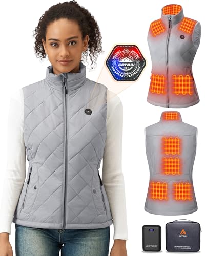 GOTOBI Gilet chauffant pour femme avec batterie de 16 000 mAh, gilet avec 9 zones de chauffage et 3 températures réglables, gilet chauffant pour activités de plein air, randonnée, ski, gris, XS