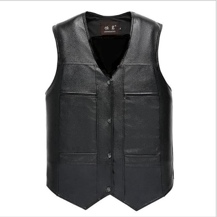 Veste Homme en Cuir Sans Manches Moto Biker Vest Gilet Rocker Noir M - FUNMOON
