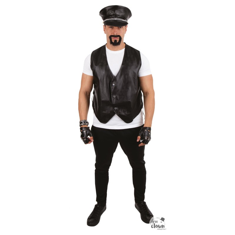 Gilet de biker - Motard - Sans manche - Imitation cuir - Noir - Déguisement - Ta