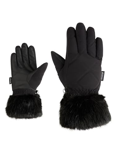 Ziener KWINZ-Z Gants de Ski pour Femme avec Poignets en Fausse Fourrure imperméable Noir 8,5