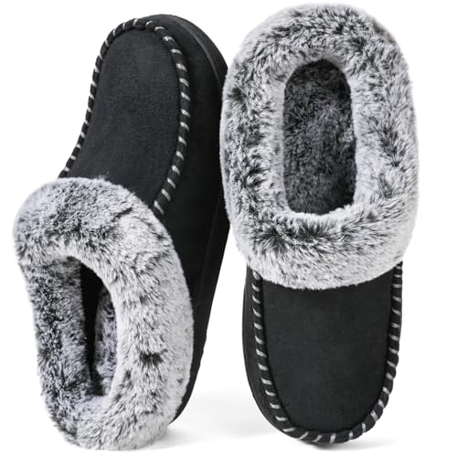 ULTRAIDEAS Mocassins confortables en mousse à mémoire de forme pour femme avec doublure en fausse fourrure pelucheuse - Chaussures d'intérieur à enfiler avec semelle en caoutchouc antidérapante pour