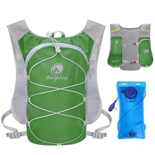 Outplea Sac à Dos Hydratation Marathoner avec Poche à Eau 2 L, Gilet Hydratation Running Ultraléger, Sac Eau Running de Camping Randonnée Trail Sport, Vert