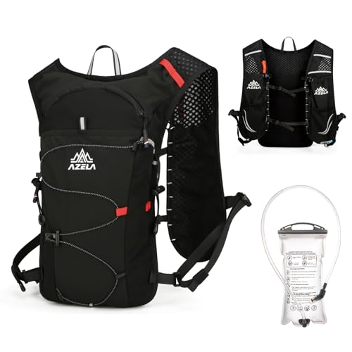 Azarxis Sac à Dos Hydratation 5L Gilet d'Hydratation Trail Léger pour Homme Femme Marathoner Cyclisme Randonnée Escalade (Noir - avec Vessie d'eau (1,5L))
