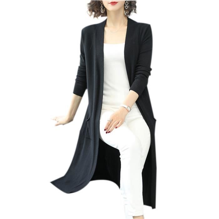 Gilet Long Femme ,Manche Longue Tricoté Léger Devant Ouvert Cardigan Elegant Décontracté Chandail Sweaters Manche Longue couleur unie avec Poches veste grande taille Lâché Blouson Manteau Outwear
