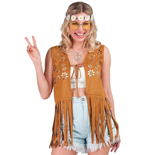 W WIDMANN MILANO Party Fashion - Costume Hippie, gilet à franges femme, marron, tenue de festival