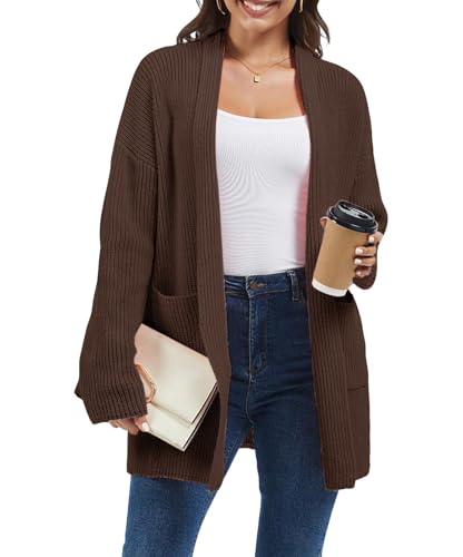 crazy bean Cardigan Femme Hiver Gilet Long Chic et Elegant Ouvert Chaud avec Poches Tricot Épais Décontracté Grosse Maille Marron M