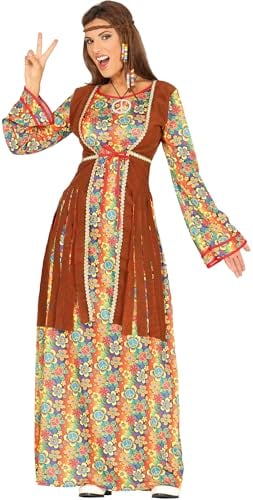 FIESTAS GUIRCA | Costume Hippie Femme (42-44/L) - Robe et Gilet - Costumes Années 60, Rétro et Bohème pour Fêtes Déguisées, Carnaval et Halloween - Idéal pour Adultes - Marron et Multicolore