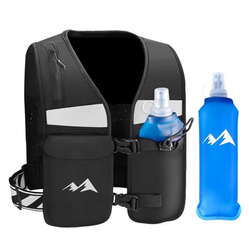 Zelvot Gilet Hydratation Running Femme et Homme, Brevet Original, Bretelles de Poitrine Réglables, Gilet Running avec Bouteille d'eau de 500 ML, Léger et Réfléchissant Gilet de Course (Noir, L/XL)