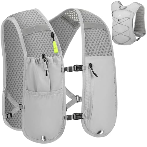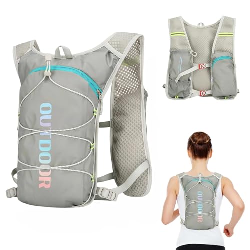 xixi-home Gilet Hydratation Running Femme Homme,Sac à Dos de Course Réglable et Réfléchissant et Léger pour Marathon,pour Randonnée,Course à Pied,Cyclisme,Marathon-Gris