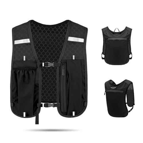 xixi-home Gilet Hydratation Running Femme Homme,Sac à Dos de Course Réglable et Réfléchissant et Léger pour Marathon,pour Randonnée,Course à Pied,Cyclisme,Marathon-Noir