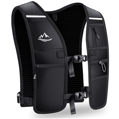 Zelvot Gilet Hydratation Running Femme et Homme, Brevet Original, Bretelles de Poitrine Réglables, Gilet Running Léger et Réfléchissant avec Bouteille d’Eau de 500 ML et Support pour Téléphone