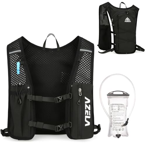 Azarxis Sac à Dos d'Hydratation Gilet Trail Running pour Homme Femme Randonnée Marathon Cyclisme (Noir avec vessie d'eau (2L), Taille Unique)